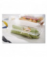 Enhance your packaging with the clarity and distinction of PET bakery containers. Our packaging effortlessly combines style and functionality to meet all your food packaging needs effectively. Made from strong PET material with a wide temperature resilience range (-20°F to 120°F) enables placement in freezers and heated display cases. Crystal clear packaging to optimize merchandising of baked goods. Great for merchandising bakery items, cheeses, produce, sandwiches, and more. SmartLock® system features a tight, audible click closure that helps ensure maximum food freshness. Smooth front panel makes sticker-labeling easy. Strong, rib-reinforced sides and back accommodate heavy items and provide enhanced crush resistance. Break-resistant hinge is flexible enough for easy closure and reliable enough for repeated openings and closings.