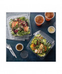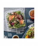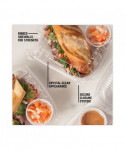Ideal grab n go packaging for everything from hot dogs to steak dinners. Outstanding clarity improves merchandising and impulse sales. Durable heavyweight OPS material provides excellent cutting/eating surface and stable stacking during transport or while on display. SmartLock® Closure System with audible click closure is fast and secure aiding in operating efficiency. Container contains an ideal placement for labeling. Comes in optimized cube utilization packs and efficient case packs for shipping.