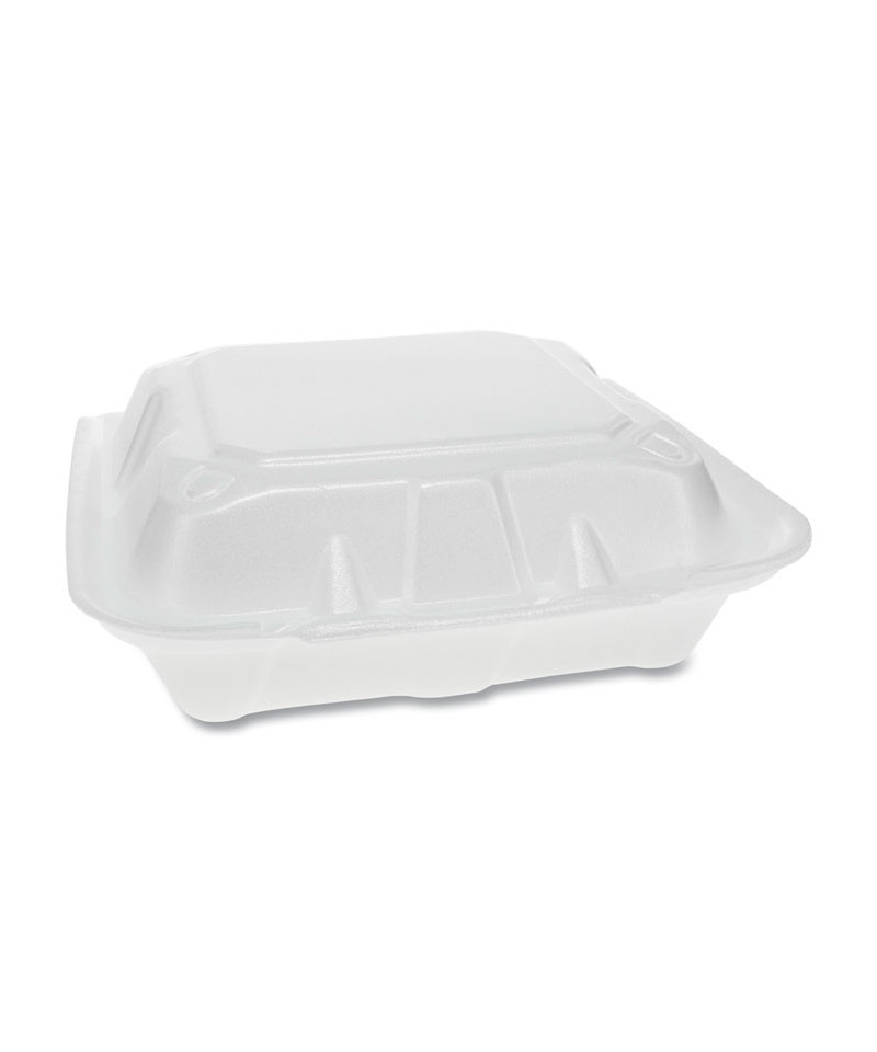 Durable foam construction makes hinged lid containers a perfect lunchtime or dinnertime choice. Containers are insulated to maintain food temperatures at their tastiest. Push-in vents help to keep products fresh and crispy. Excellent for use with both hot and cold foods.