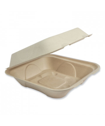 Made from unbleached plant fiber, an annually renewable resource and good alternative to petroleum-based containers. Soak proof, freezer safe, and contain no wax or plastic lining. Great for grocery stores, supermarkets, restaurants, cafes, delis, and food trucks with takeout entrees, burgers, sandwiches and more. 100% compostable in two to four months in a commercial composting facility. Gluten free. The tear drop shaped protuberances on the exterior of the clamshell containers are a trademark of World Centric.®