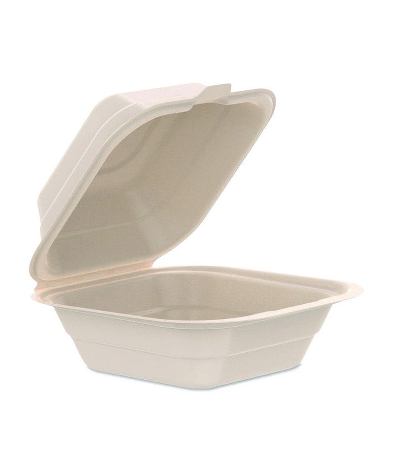 A forward-thinking twist on the classic carryout container! Elevate your takeout and delivery with bagasse containers that have no intentionally added PFAS. Cut-resistant containers are the perfect packaging for salads, sandwiches and entrées. Save time preparing orders thanks to the hinged lid design. Stable stacking and secure closure help securely package and transport meals. Serve hot and cold foods with confidence. These microwaveable containers are suitable for customers to reheat and enjoy. Whether you're delivering the best takeout in town, dishing up food truck fare or serving dinner at the deli counter, these hinged lid containers made from bagasse provide a sustainable and high-quality solution.