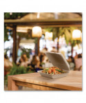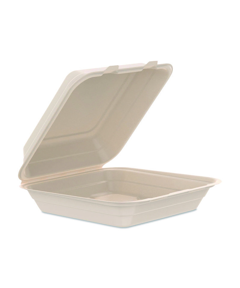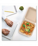 A forward-thinking twist on the classic carryout container! Elevate your takeout and delivery with bagasse containers that have no intentionally added PFAS. Cut-resistant containers are the perfect packaging for salads, sandwiches and entrées. Save time preparing orders thanks to the hinged lid design. Stable stacking and secure closure help securely package and transport meals. Serve hot and cold foods with confidence. These microwaveable containers are suitable for customers to reheat and enjoy. Whether you're delivering the best takeout in town, dishing up food truck fare or serving dinner at the deli counter, these hinged lid containers made from bagasse provide a sustainable and high-quality solution.