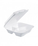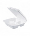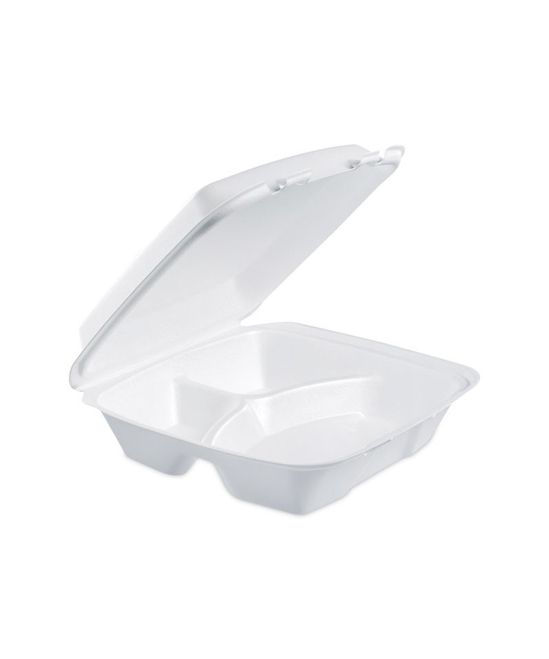 Insulated Foam Hinged Lid Containers, 3 Compartments, 9 x 9.4 x 3, White, 100/Sleeve, 2 Sleeves/Carton