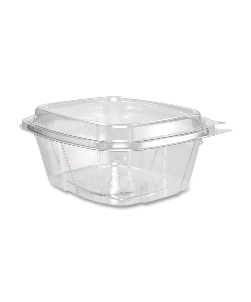 No matter what's inside, these containers keep your food safe, secure and looking good! Designed to prevent tampering without shrink bands or extra wrapping, our containers make sharing food easy. Keep contents fresh and prevent leaks with the secure perimeter seal. The tamper alert hinge has a visible seal that, if broken, makes it obvious the container has been opened. The specialty lid inhibits the ability to lift it from the base without tearing the hinge. Once the seal is broken, the now two-piece container is easy to re-close and continues to be leak-resistant. Make sure your food is the star of the show thanks to the crystal-clear material. Merchandising and delivery is a breeze the sturdy stackable design. They're even great for at-home use. Transport salads, fruits, or desserts to your next picnic, potluck, or bake sale.
