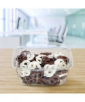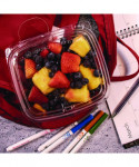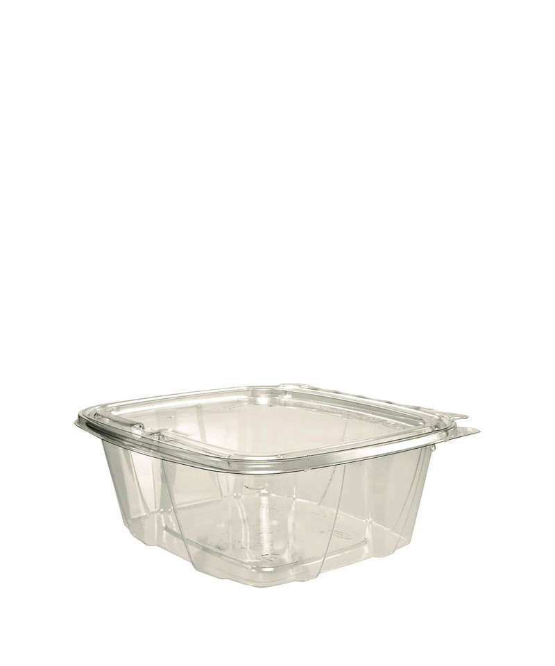 No matter what's inside, these containers keep your food safe, secure and looking good! Designed to prevent tampering without shrink bands or extra wrapping, our containers make sharing food easy. Keep contents fresh and prevent leaks with the secure perimeter seal. The tamper alert hinge has a visible seal that, if broken, makes it obvious the container has been opened. The specialty lid inhibits the ability to lift it from the base without tearing the hinge. Once the seal is broken, the now two-piece container is easy to re-close and continues to be leak-resistant. Make sure your food is the star of the show thanks to the crystal-clear material. Merchandising and delivery is a breeze with the sturdy stackable design. They're even great for at-home use. Transport salads, fruits, or desserts to your next picnic, potluck, or bake sale.