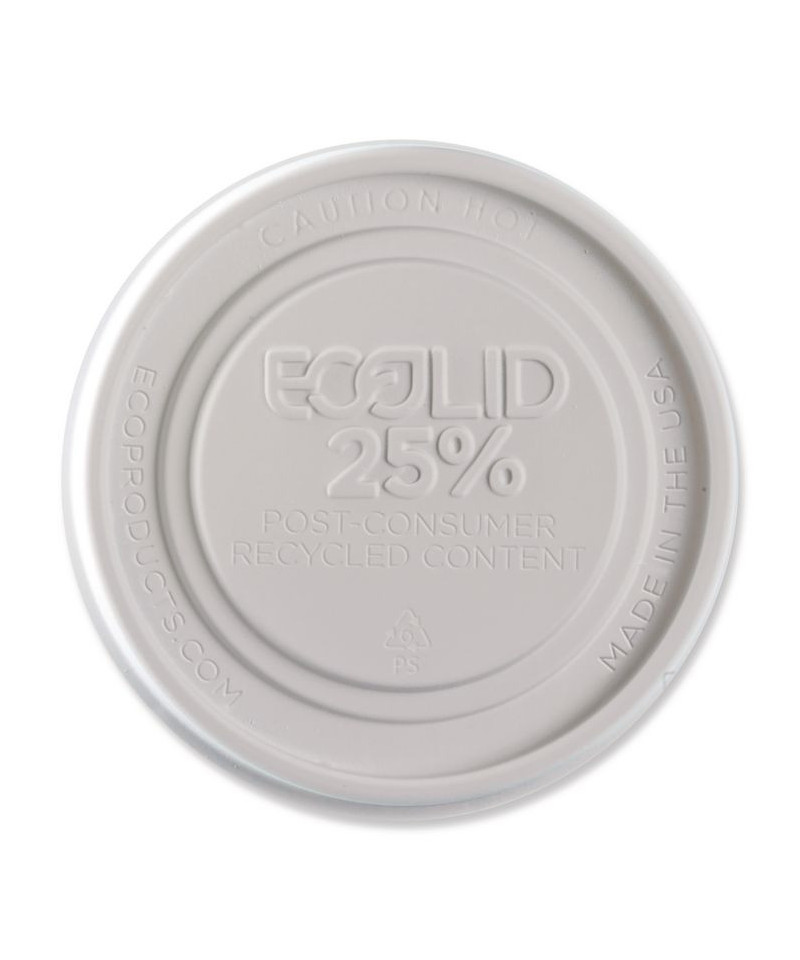 A one-of-a-kind food container lid made from recycled polystyrene. The EcoLid 25 is an industry-first, recycled content solution that can help keep waste out of landfills. Performs just like traditional plastic. Used for keeping food hot and locking in freshness. This lid can be used with the Evolutions World™ containers that range from 12 ounces to 32 ounces in capacity.