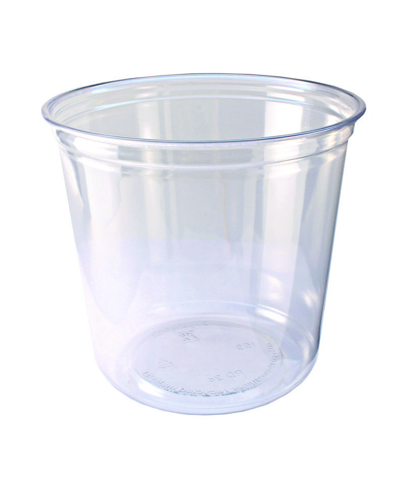 Made from recycled (PCR) PET plastic bottles. The recycled PET material performs well in cool temperature applications and is crack resistant. Durable and leak-resistant. Stylish and crystal-clear for complete product visibility. Paired with Recycleware® Deli Container Lids, provides a snap fit lid application and removal.