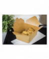 The fold-to-go take out container is made of heavy-duty paperboard with a poly lining, which makes it microwavable, stackable, cut-resistant, leak-resistant, and grease-resistant. The one-piece design requires no assembly and allows it to hold food, gravy, and sauce. It could also be a great way to package appetizers, cookies, candy, or gifts.