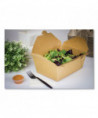 The fold-to-go take out container is made of heavy-duty paperboard with a poly lining, which makes it microwavable, stackable, cut-resistant, leak-resistant, and grease-resistant. The one-piece design requires no assembly and allows it to hold food, gravy, and sauce. It could also be a great way to package appetizers, cookies, candy, or gifts.