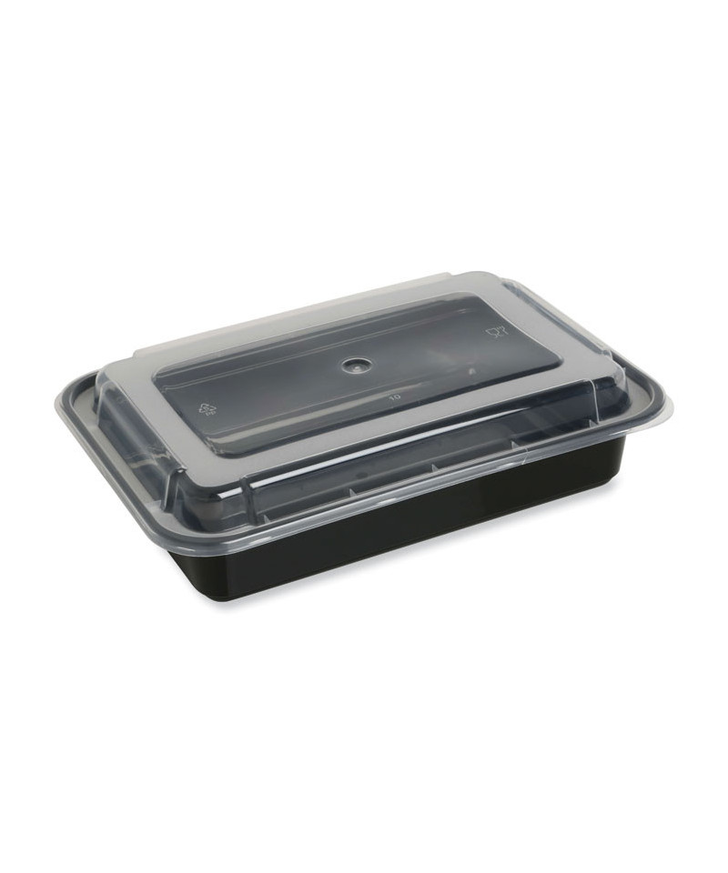 Black base with a clear lid, these food containers are the perfect option for pick-up, delivery or take out. Lid is separate piece. Items are microwave safe.