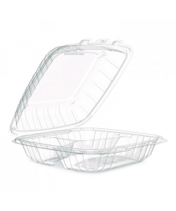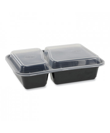 Black base with a clear lid, these food containers are the perfect option for pick-up, delivery or take out. Lid is separate piece. Items are microwave safe.