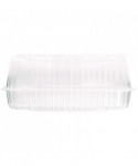 These clear-hinged plastic take-out containers lock in freshness for a wide variety of restaurant, food service and bakery needs. Keep your salads, sandwiches and sides appealing and appetizing with these sturdy, flexible clamshell containers made with OPS material. Recyclable containers provide excellent product visibility and clarity.
