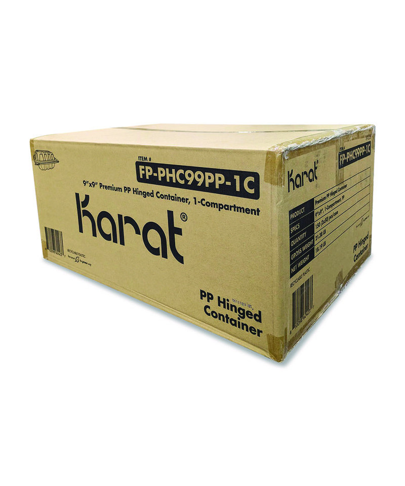 Karat® polypropylene and premium polypropylene containers are made of high-quality polypropylene, equipped with pull-lock tabs, and can handle temperatures from -14°F to 220°F. Ideal for hot, fresh food and microwaving, featuring four vents. These containers are very sturdy and versatile, making them suitable for all types of food packaging.