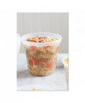 Clear, smooth-wall design enables easy order recognition. Tight, leak-resistant seal protects contents from contamination and helps prevent messy leaks and spills. Exceptional temperature resilience enables use in freezers, refrigerators and microwaves. Stackable, nest-style storage helps you make the most of your workspace.