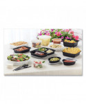 Versatile, economically priced containers accommodate both hot and cold foods. Tight-fitting, leak-resistant lid seals in heat and preserves your menu items' flavors. Compact nest-style stacking minimizes their storage footprint. Microwavable, dishwasher-safe and reusable.