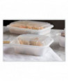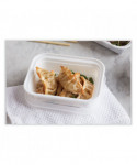 Versatile, economically priced containers accommodate both hot and cold foods. Tight-fitting, leak-resistant lid seals in heat and preserves your menu items' flavors. Compact nest-style stacking minimizes their storage footprint. Microwavable, dishwasher-safe and reusable.