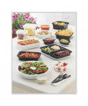 Versatile, economically priced containers accommodate both hot and cold foods. Tight-fitting, leak-resistant lid seals in heat and preserves your menu items' flavors. Compact nest-style stacking minimizes their storage footprint. Microwavable, dishwasher-safe and reusable.