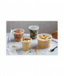 Lids are perfect for either hot or cold applications. Strong, leak-resistant seal. Microwaveable, stackable, refrigerator-friendly and top-rack dishwasher safe. End-user reusable for the consumer or recyclable.