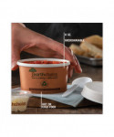Renewable, versatile, and dependable. These containers are microwavable, which makes them great for a variety of hot or cold foods. Each soak-through-resistant cup is color-coded for easy size identification to help lessen the chance of operator mistakes and speed up food assembly. Cups will not melt or deform, which makes them ideal for delivery and takeout. Perfect for hot or cold foods such as soup, pasta salad, and mac and cheese. Made from 100% annually renewable resources and meet ASTM standard D6868 or D6400. Commercially compostable only. Facilities may not exist in your area. Not suitable for home composting.