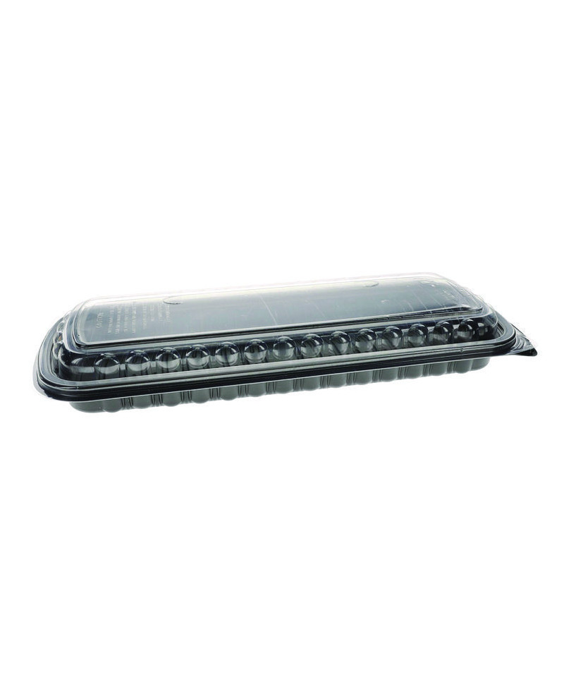MealMaster® two-piece rib container is designed to showcase pre-cooked ribs and other entrees or side dishes by providing outstanding anti-fog technology coupled with a high clarity dome for exceptional visual appeal. ZipSeal™ provides increased leak resistance with an improved dome seal and microwaveable base. The mineral filled polypropylene (MFPP) bases are made with 50% less plastic than traditional polypropylene (PP) containers, reducing fossil fuel based material usage.