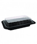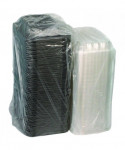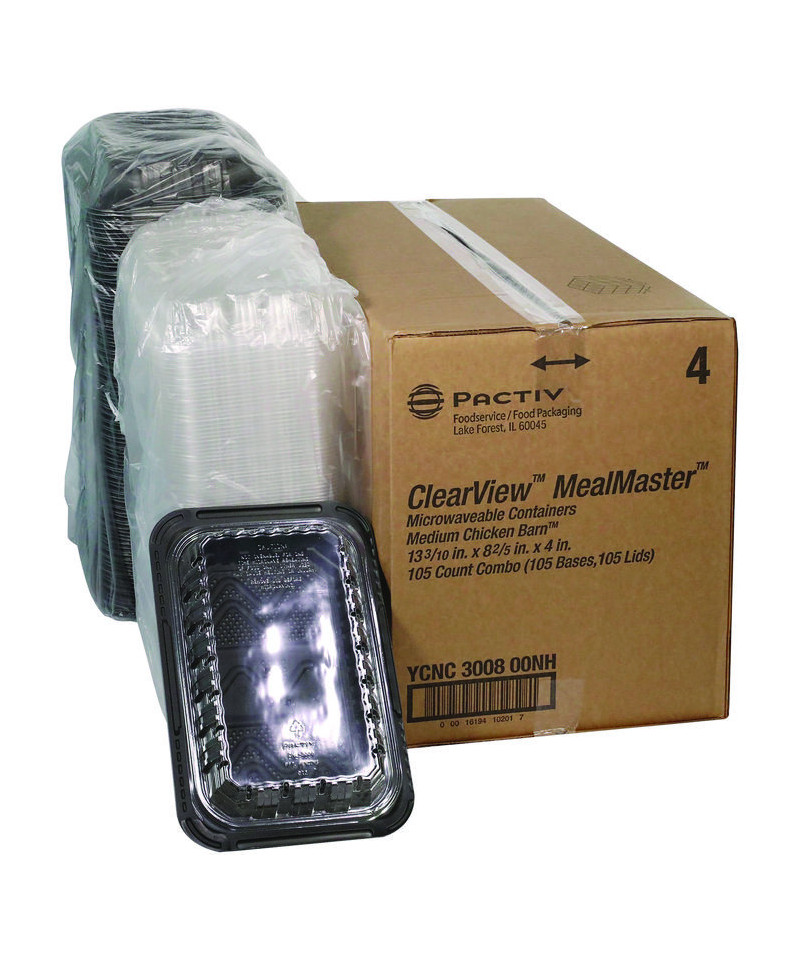 Designed to hold hot fried foods with breading, Clearview MealMaster Chicken Barns are equipped with a built-in venting system which allows steam to vent minimizing any condensation on the lid for superior merchandising while ensuring that crispy food stays crisp from the store to the consumers' door. In addition, the unique dimpling pattern on the microwaveable base helps to trap any grease so that it doesn't come in contact with the food. Maximize hot case impulse sales by using this exceptional packaging!