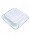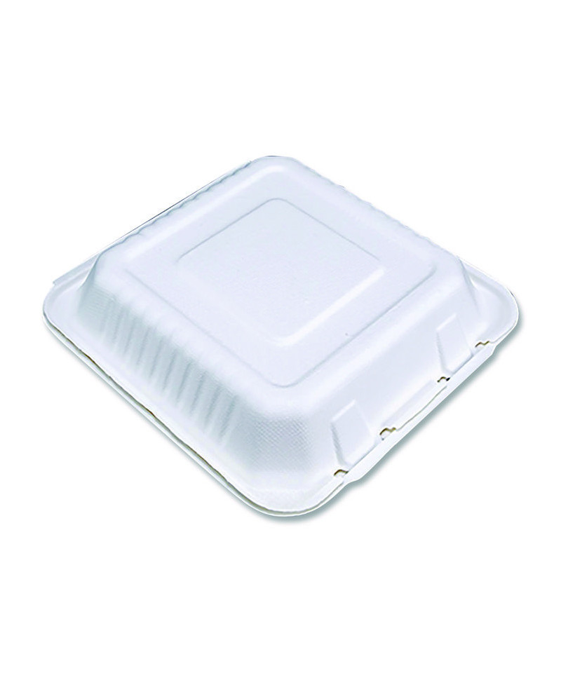 Show your customers how much you care when you choose durable bagasse molded-fiber containers. Heavyweight construction provides cut- and leak-resistant protection. Tab-lock closure minimizes the potential for messy in-transit openings.