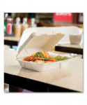 Practical and stylish clamshell, in Vegware™ Nourish molded fiber. For hot or cold food, to-go street food, fried rice, salads or even sweet treats. Award-winning quality by Vegware™, made from plants. Made from recyclable materials.
