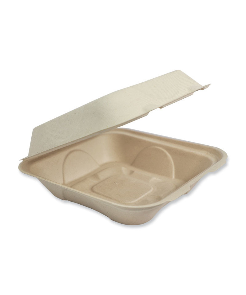 Fiber Hinged Takeout Containers, 9.2 x 9.1 x 3.2, Natural, Paper, 300/Carton