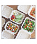 World Centric® compostable fiber hinged takeout boxes are made from sustainable unbleached plant fiber with no added PFAS. Great for takeout restaurants, cafes and food trucks, these containers are durable, grease and moisture resistant, and gluten free. As a certified B Corporation, World Centric® is dedicated to upholding the highest standards of social and environmental responsibility, transparency, and accountability. We proudly give 25% of our profits to grassroots organizations driving global change. Choose World Centric® compostable foodservice products and make a difference today!