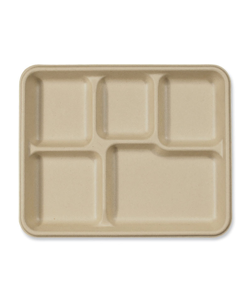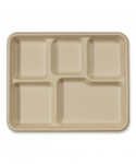 Fiber Foodservice Trays, 5 Compartments, 8.5 x 10.24 x 1.01, Natural, Paper, 400/Carton
