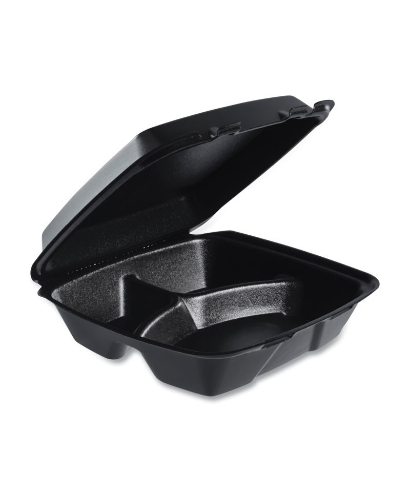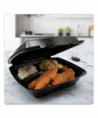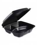 Insulated Foam Hinged Lid Containers, 3 Compartments, 9.01" x 9.4" x 3.1", Black, 200/Carton