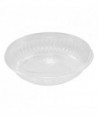 Clear bowls allow you to easily identify the product within. Elegant design on the bowls creates an upscale image. These bowls are also stackable, saving storage space. They're versatile, good for holding many different kinds of items including bakery and deli goods and produce.