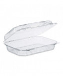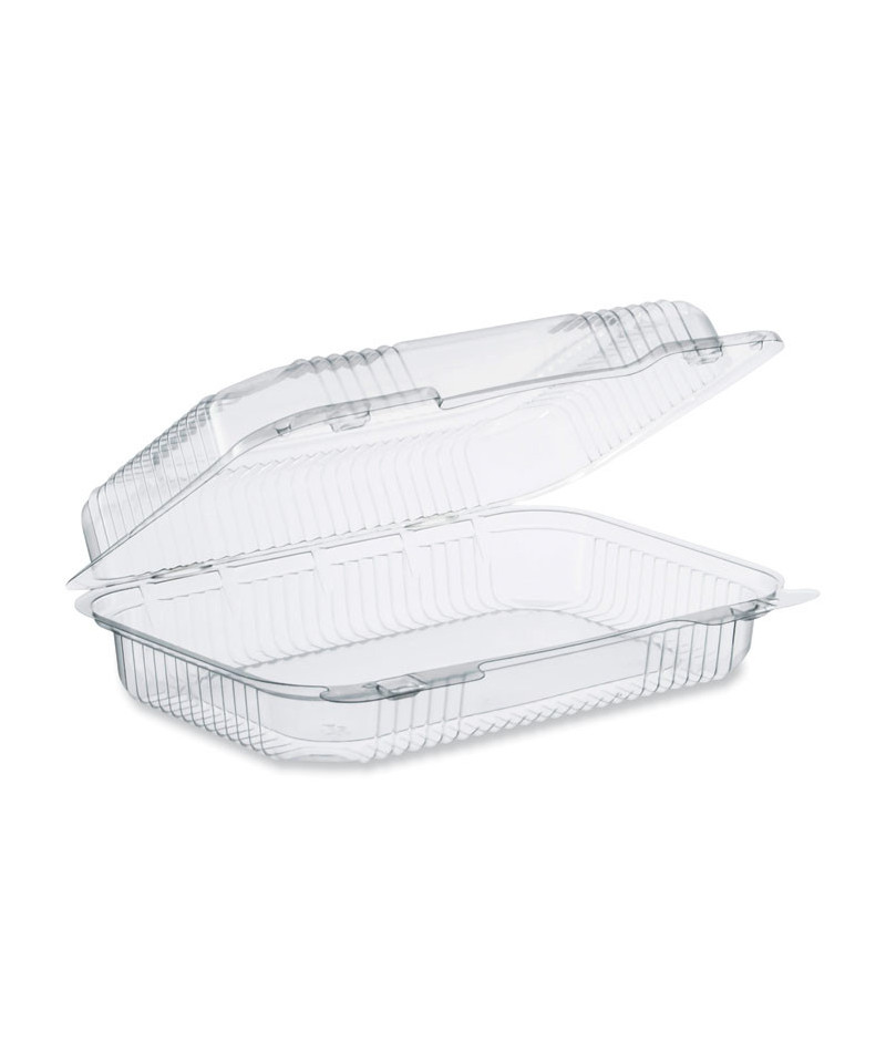 Clear hinged containers offer crystal clarity for excellent product visibility. Dual bar locks ensure a secure closure, even after multiple openings, while sidewall ribbing and chamfered corners increase strength and durability. Lightweight, crush-resistant and stackable. Serve multiple applications.