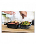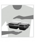 Creative Carryouts Hinged Plastic Hot Deli Boxes, 2 Compartments, 8.05 x 11.5 x 2.95, Black/Clear, 100/Carton