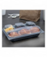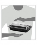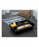 Creative Carryouts Hinged Plastic Hot Deli Boxes, 4 Compartments, 8.05 x 11.5 x 2.95, Black/Clear, 100/Carton