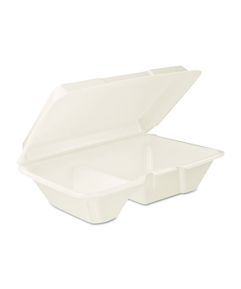 Foam Hinged Lid Containers, 6.4 x 9.33 x 2.9, White, 100/Bags, 2 Bags/Carton
