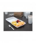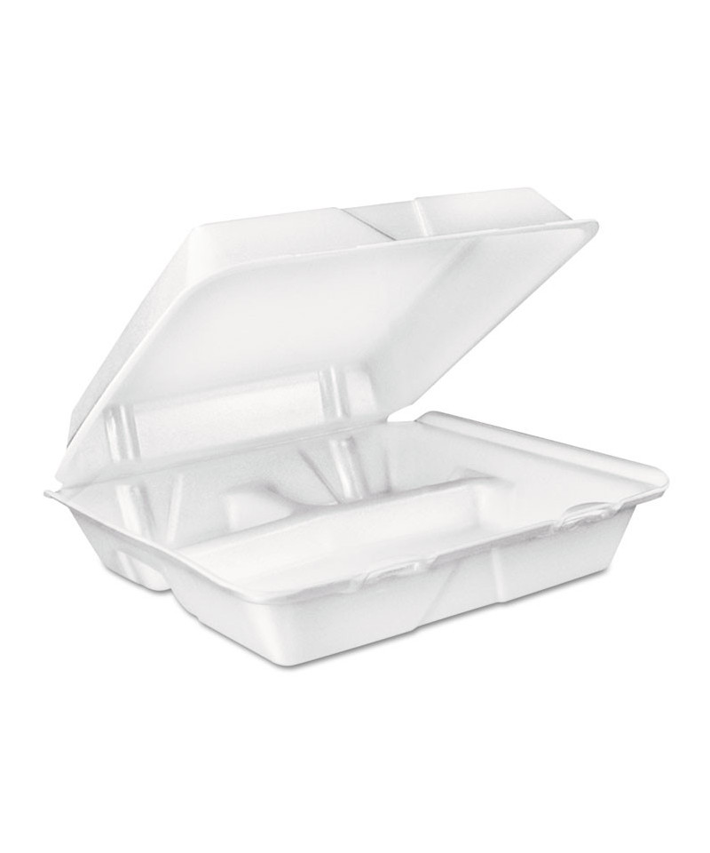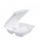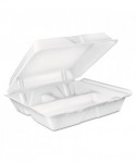 Foam Hinged Lid Container, 3 Compartments, 8 oz, 9 x 9.4 x 3, White, 100/Sleeve, 2 Sleeves/Carton
