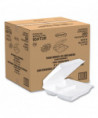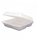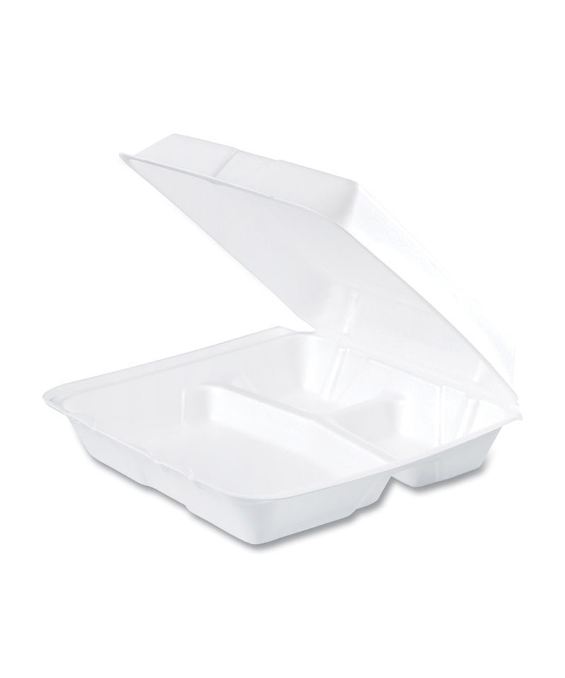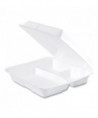 Foam Hinged Lid Containers, 3 Compartments, 9.25 x 9.5 x 3, White, 100/Sleeve, 2 Sleeves/Carton
