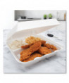 Carryout just wouldn't be the same without these classic hinged-lid containers! And with these, sending leftovers home with loved ones is a breeze. Use this container for hot or cold foods, from submarine sandwiches to pumpkin rolls. Insulated and non-absorbent, these containers will keep your food at the right temperature without any sauce or grease soaking through. Not only is the lid closure top notch, the perforated hinge makes it easy to remove the lid completely for a more enjoyable dining experience. Whether you're serving up the best takeout in town, dishing up foodtruck fare or stepping up your holiday gathering leftovers game, these durable containers have your back.