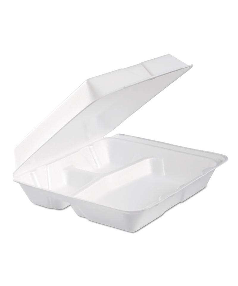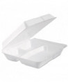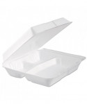 Foam Hinged Lid Container, 3 Compartments, 9.3 x 9.5 x 3, White, 100/Bag, 2 Bag/Carton