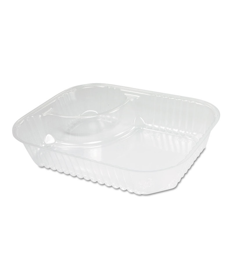 Our containers not only look great, they make serving food easy! Crystal clarity allows what's inside to be the star of the show. These two-compartment nacho trays ensure efficient portioning and on-the-go enjoyment! Serve traditional tortilla chips with nacho cheese, soft pretzel bites with dip, or tater tots with ketchup! The combinations are endless. Perfect for concessions and food trucks!