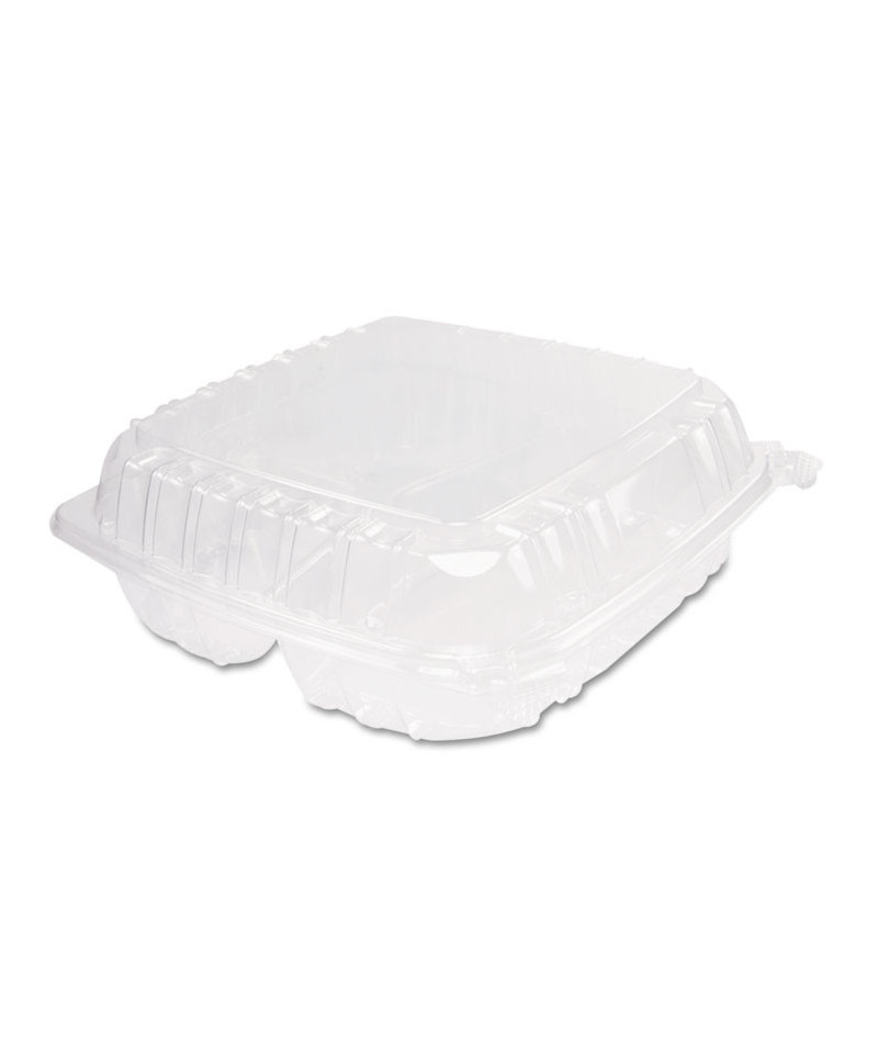 ClearSeal Hinged-Lid Plastic Containers, 3 Compartments, 9.4 x 8.9 x 3, Plastic, 100/Bag, 2 Bags/Carton