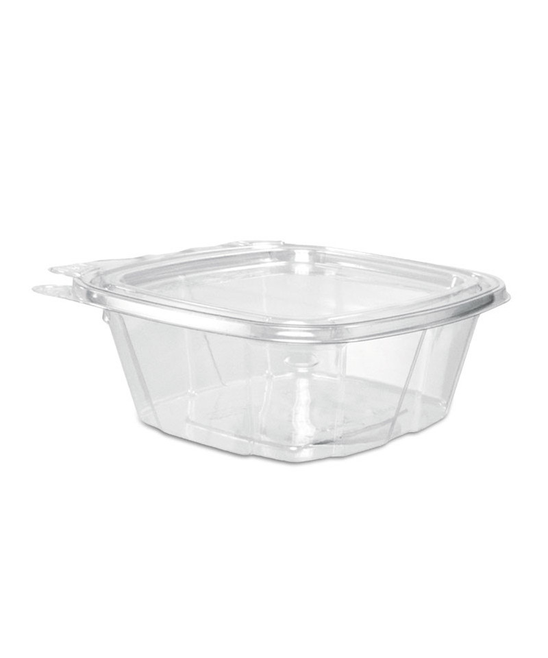 No matter what's inside, these containers keep your food safe, secure and looking good! Designed to prevent tampering without shrink bands or extra wrapping, our containers make sharing food easy. Keep contents fresh and prevent leaks with the secure perimeter seal. The tamper alert hinge has a visible seal that, if broken, makes it obvious the container has been opened. The specialty lid inhibits the ability to lift it from the base without tearing the hinge. Once the seal is broken, the now two-piece container is easy to re-close and continues to be leak-resistant. Make sure your food is the star of the show thanks to the crystal-clear material. Merchandising and delivery is a breeze the sturdy stackable design. They're even great for at-home use. Transport salads, fruits, or desserts to your next picnic, potluck, or bake sale.