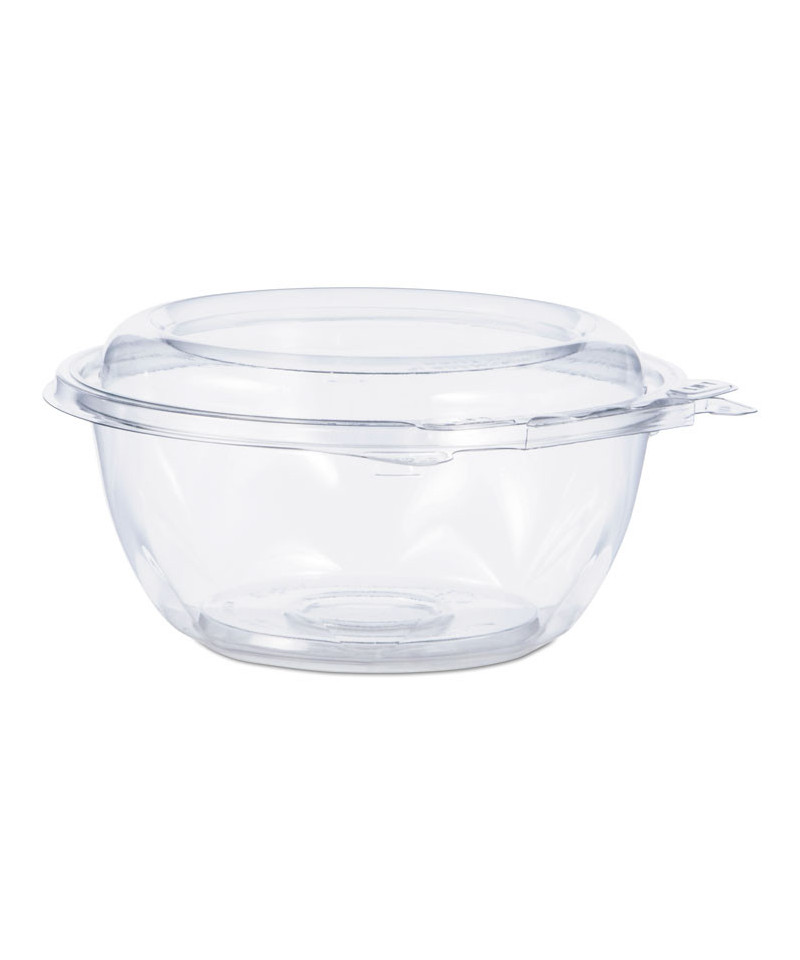 No matter what's inside, these bowls keep your food safe, secure and looking good! Designed to prevent tampering without shrink bands or extra wrapping, SafeSeal bowls make sharing food easy. The complete perimeter seal preserves freshness and prevents leaks and spills. The tamper alert hinge has a visible seal that, if broken, makes it obvious the container has been opened. The specialty lid inhibits the ability to lift it from the base without tearing the hinge. Once the seal is broken, the now two-piece container is easy to re-close and continues to be leak-resistant. Make sure your food is the star of the show with this crystal-clear material. Merchandise and transport with confidence thanks to the stable stacking design