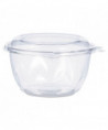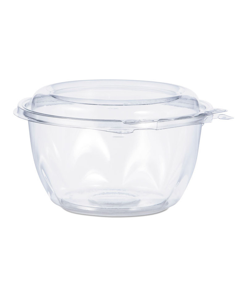 No matter what's inside, these bowls keep your food safe, secure and looking good! Designed to prevent tampering without shrink bands or extra wrapping, SafeSeal bowls make sharing food easy. The complete perimeter seal preserves freshness and prevents leaks and spills. The tamper alert hinge has a visible seal that, if broken, makes it obvious the container has been opened. The specialty lid inhibits the ability to lift it from the base without tearing the hinge. Once the seal is broken, the now two-piece container is easy to re-close and continues to be leak-resistant. Make sure your food is the star of the show with this crystal-clear material. Merchandise and transport with confidence thanks to the stable stacking design