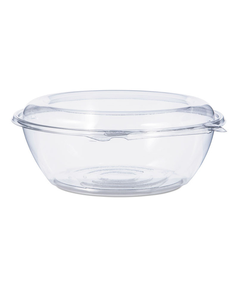 No matter what's inside, these bowls keep your food safe, secure and looking good! Designed to prevent tampering without shrink bands or extra wrapping, SafeSeal bowls make sharing food easy. The complete perimeter seal preserves freshness and prevents leaks and spills. The tamper alert hinge has a visible seal that, if broken, makes it obvious the container has been opened. The specialty lid inhibits the ability to lift it from the base without tearing the hinge. Once the seal is broken, the now two-piece container is easy to re-close and continues to be leak-resistant. Make sure your food is the star of the show with this crystal-clear material. Merchandise and transport with confidence thanks to the stable stacking design