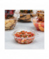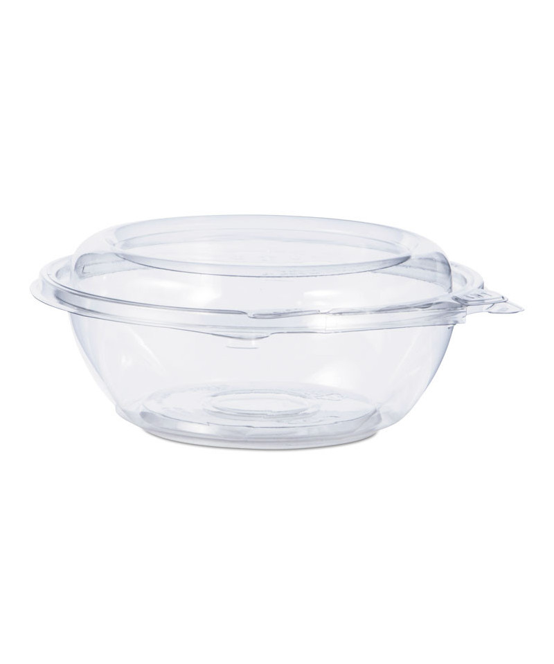 No matter what's inside, these bowls keep your food safe, secure and looking good! Designed to prevent tampering without shrink bands or extra wrapping, SafeSeal bowls make sharing food easy. The complete perimeter seal preserves freshness and prevents leaks and spills. The tamper alert hinge has a visible seal that, if broken, makes it obvious the container has been opened. The specialty lid inhibits the ability to lift it from the base without tearing the hinge. Once the seal is broken, the now two-piece container is easy to re-close and continues to be leak-resistant. Make sure your food is the star of the show with this crystal-clear material. Merchandise and transport with confidence thanks to the stable stacking design