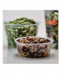 Package salads, soups and more in flavor- and odor-transfer-proof containers. Printable surface provides branding and labeling opportunities. Smooth-rolled, doubled-over rims enhance rigidity.