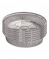 Temperature-adaptable containers accommodate a wide variety of menu items. Sturdy aluminum may be used for storing, serving, carryout and oven reheating. Easy to clean for reuse.
