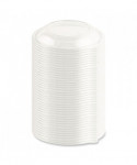 Inner/outer double-seal provides a leak-resistant seal. Large textured tabs, provide for easy opening by customers. An interlocking feature on the bowl and lid assures positive stacking on display or in the bag.